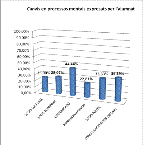 processos mentals o millora dels existents. Síntesi de resultats significatius: El segment d’alumnat pertanyent a l’àmbit d’estudis