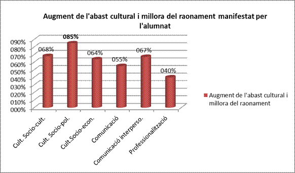 també assenyala la competència de culturització socioeconòmica. Cal fer especial esment al 67% que apunta que el