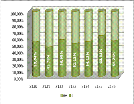 corresponent al “si” són les respostes marcades, les corresponent al “no” les